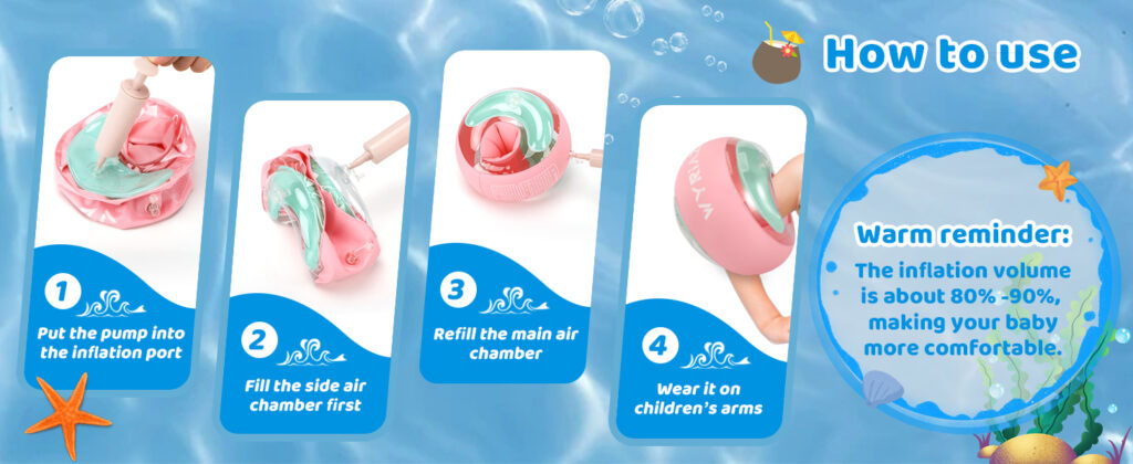 | Skin-friendly Material | Upgraded PVC material, safe and environmentally friendly, designed for infants and toddlers, the best tool for learning to swim. High sealing makes the arm float ring has better waterproof sealing and longer service life. |