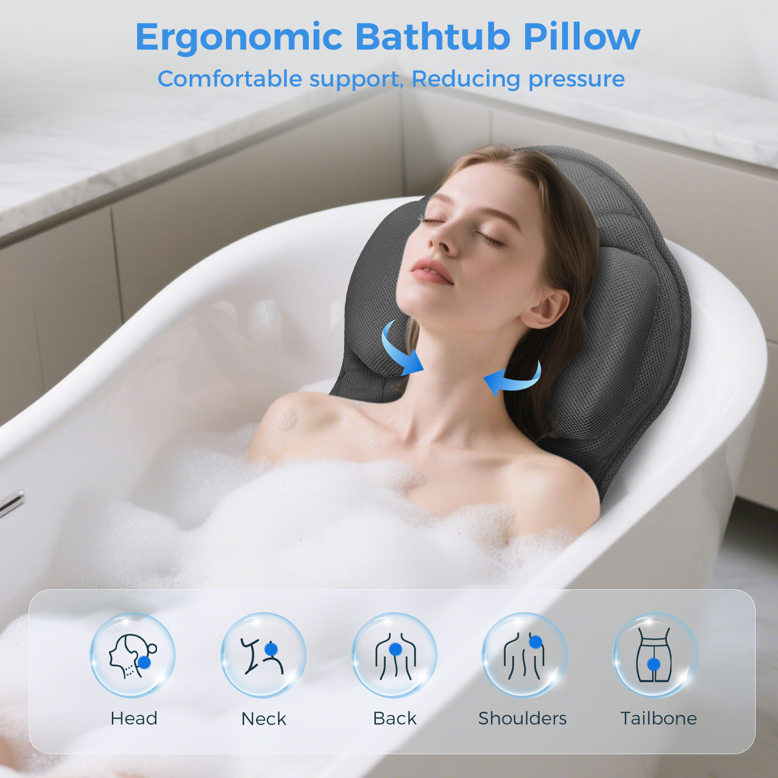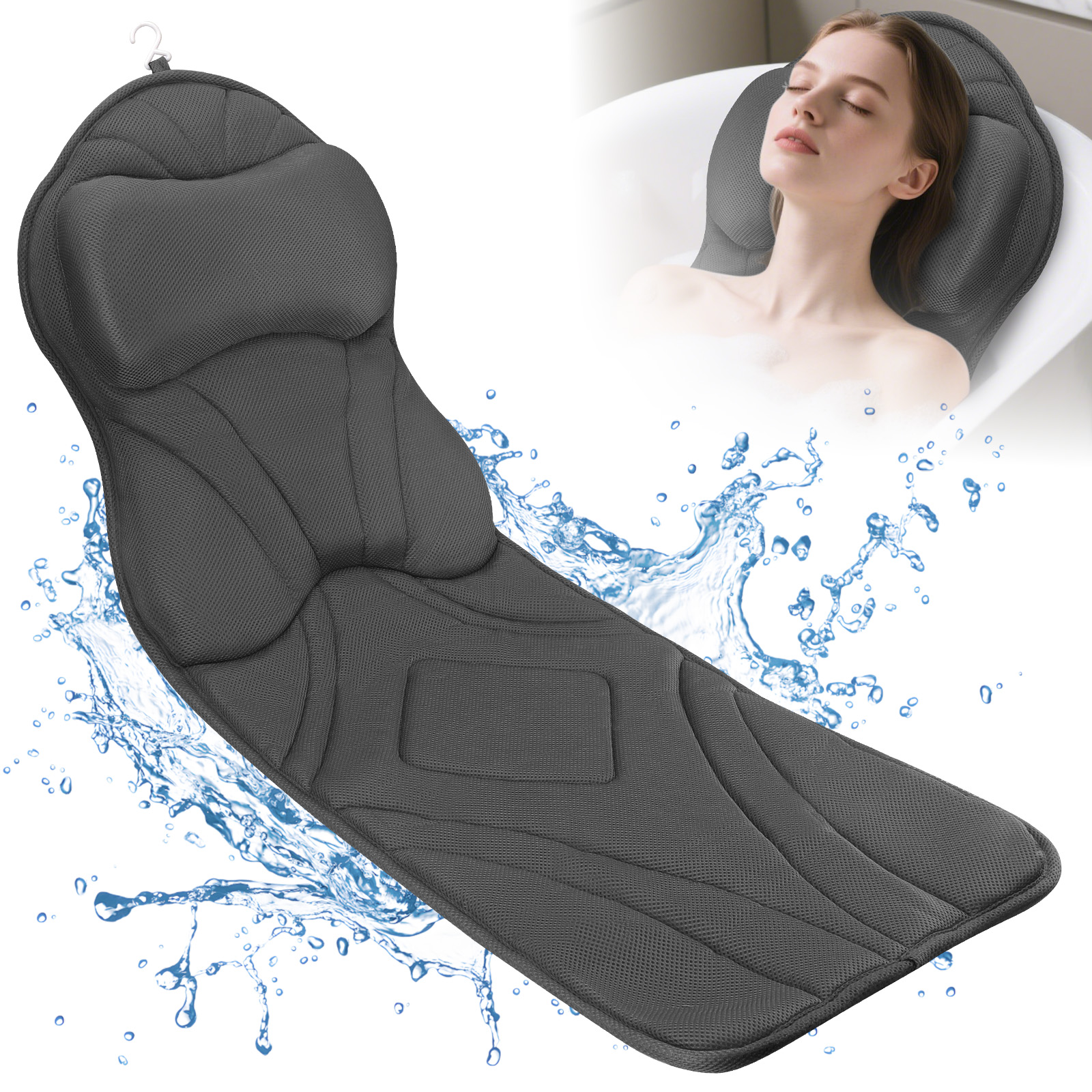 & Free Shipping| Full Body Bath Pillow for Tub, Soft Bathtub Pillow for Neck and Back Support, Washable 4D Mesh Bathtub Cushion with 11 Non-Slip Suction Cups |